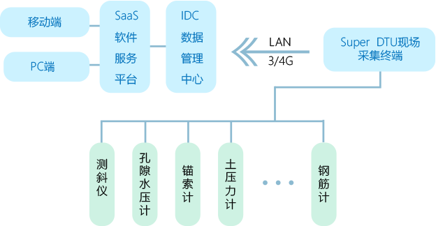 监测项目 监测仪器 在线监测终端 super DUT系列现场采集终端 地表变形监测 GPS/北斗/GNSS 滑坡深部位移监测 DDM型固定测料仪 地下水位动态监测 TPE -SW型水位计 孔隙水压力监测 STS-KXSY型孔隙水压力计 支护结构应力应变监测 STS-GJ型撅弦式钢筋计 STS-TYL型土压力计 STS-MS型锚索计 孔隙水压力监测 DPT-LLF型裂缝计 -